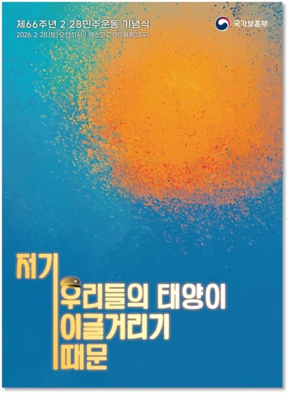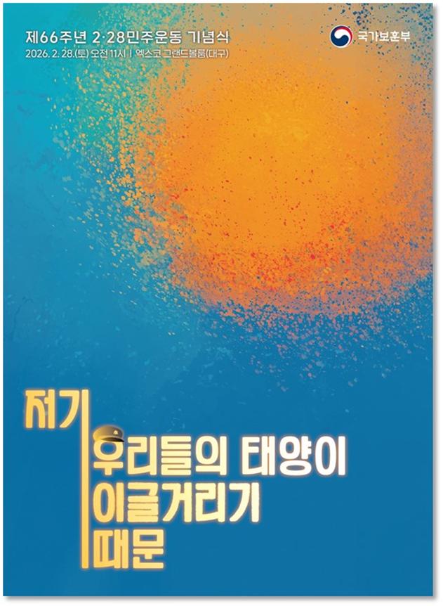 |  | | | ↑↑ 포스터 | | ⓒ CBN뉴스 - 대구 | | [cbn뉴스=이재영 기자] 국가보훈부(장관 권오을)는 광복 이후 최초의 학생 민주화운동인 2·28민주운동의 역사적 의미와 숭고한 정신을 국민과 함께 기억하고 계승하기 위한 ‘제66주년 2·28민주운동 기념식’을 28일(토) 오전 11시, 대구 엑스코(그랜드볼룸, 대구광역시 북구)에서 거행한다고 밝혔다.